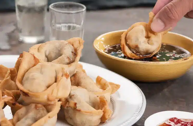 Colocar un poquito de relleno en el centro de los cuadrados de masa. Mojar los bordes, juntar punta con punta la masa, y apretar para que quede bien cerrado, formando un triรกngulo, luego juntar las otras dos puntas y superponerlas. Freรญr.