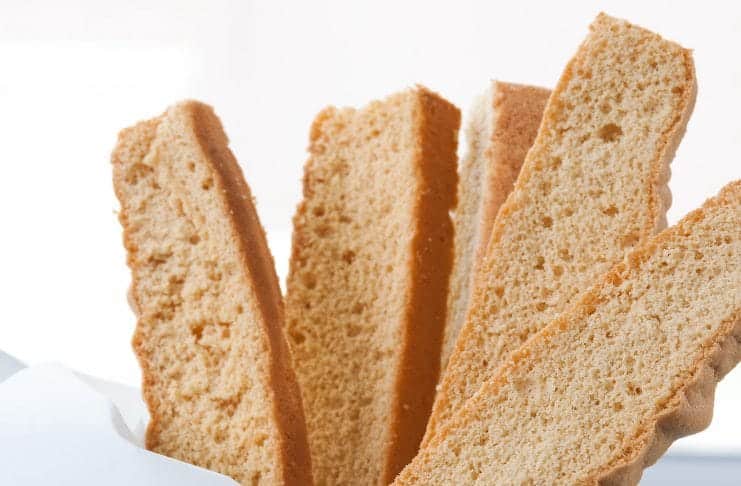 Llevar nuevamente al horno, pero esta vez a temperatura baja, hasta que los bizcochos se doren y queden crocantes.