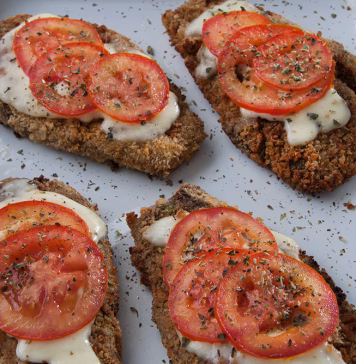 Poner las milanesas en una fuente con un poco de aceite o rocío vegetal, rociar también por arriba y cocinar en horno fuerte hasta que estén doradas. Dar vuelta, poner queso, rodajas de tomates y terminar de cocinar. Espolvorear con orégano y servir con ensalada.