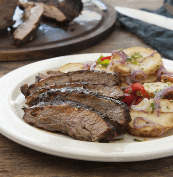 Servir el vacío cortado en rebanadas acompañando con las papas, terminar con perejil.