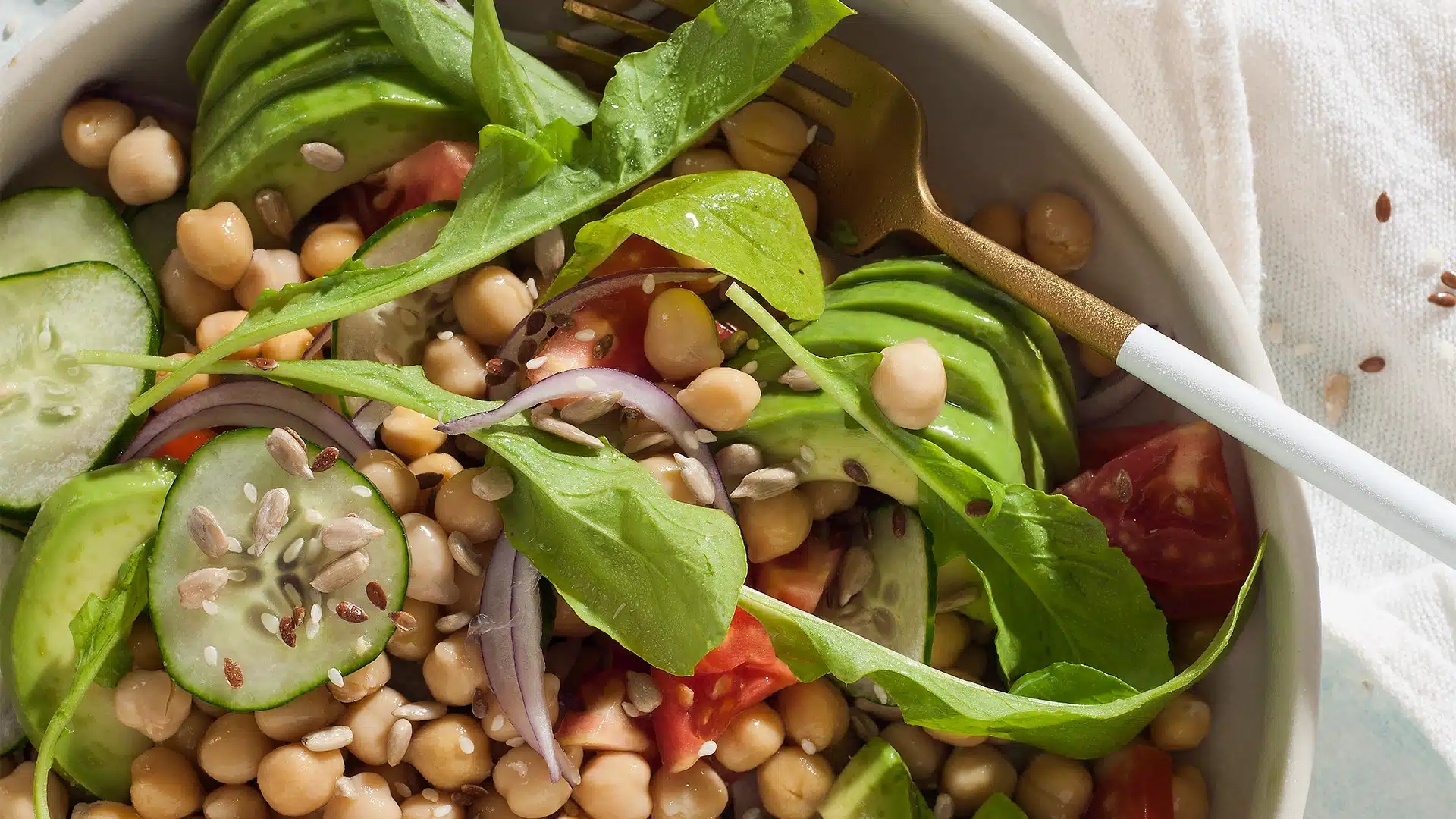 Poner en un bol o recipiente los garbanzos junto con los demรกs ingredientes.