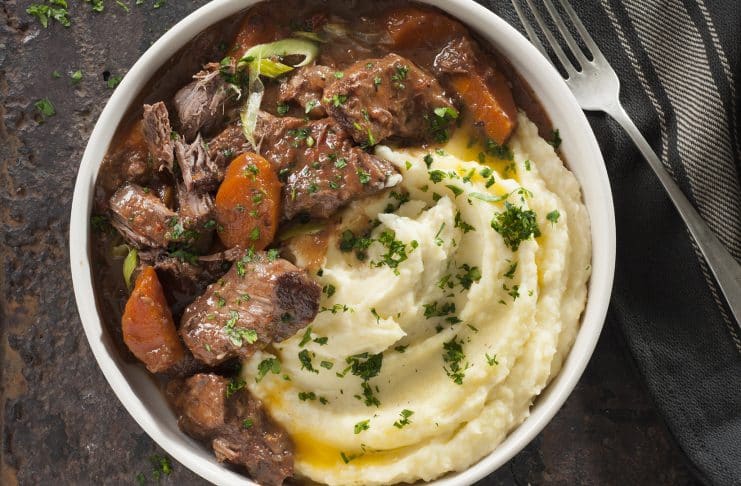 Servir el puré con el estofado, terminar con perejil picado.