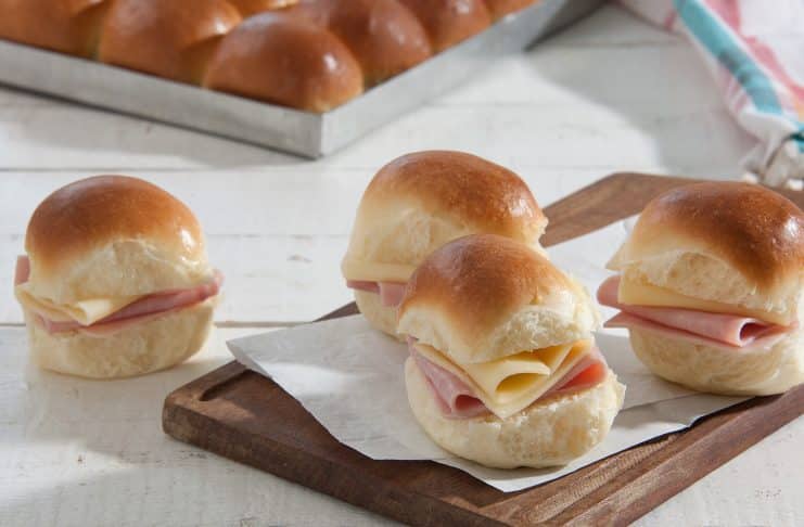 Con esta misma masa, reemplazando los 2 huevos por 100 cc mรกs de leche, se puede hacer pan de hamburguesa (70 g), de pebete (90 g) o de pancho (60 g).