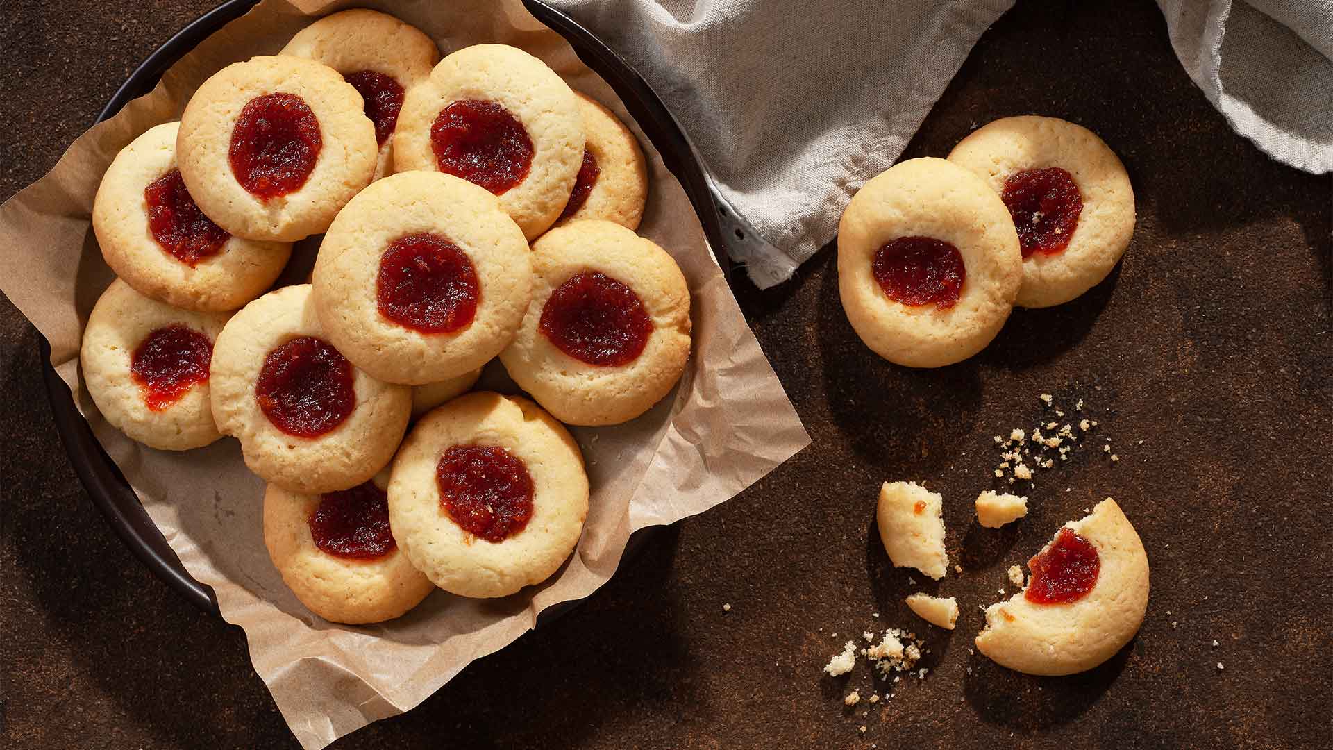 Con el dedo hacer un hueco en el centro y colocar con la manga un punto de dulce de membrillo.