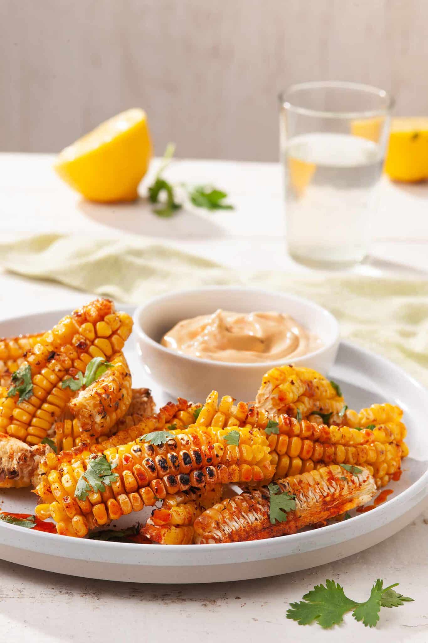 Cortar los choclos, primero a la mitad y luego verticalmente en 4 partes.