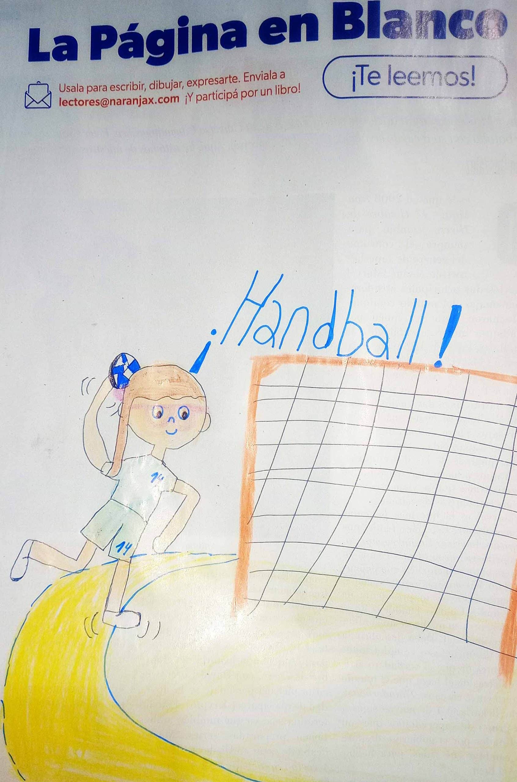โMe gusta jugar al handball. Me dibujรฉ saltando y a punto de hacer un golโ.