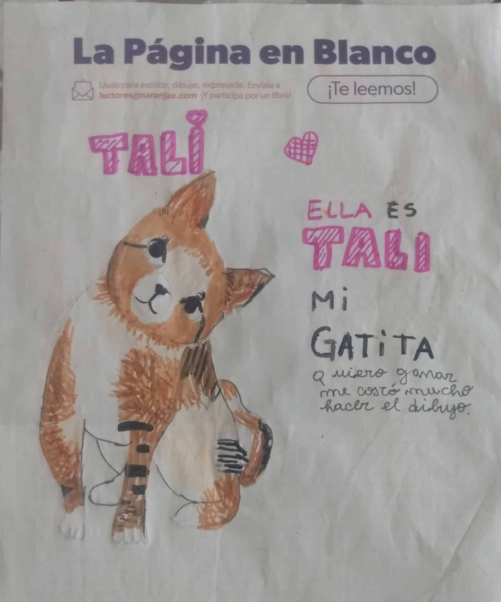 “Me gusta mucho estar con mi gatita. Ahora tengo dos, Tali y Simba. Los amo. Cuando me enteré de este concurso, no dudé en participar, porque me encanta dibujar, es mi hobbie principal. Además, soy fiel lectora de la revista y hago las manualidades del suplemento Piedra Libre”.