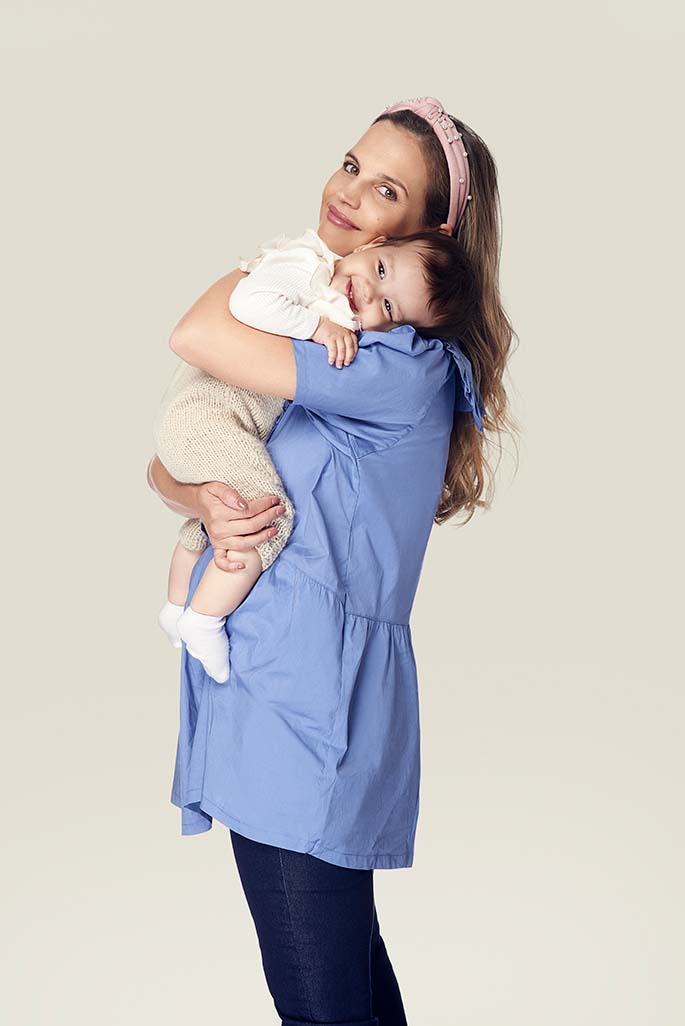 La atracción por los bebés y la maternidad también la acompaña desde chica. No se sentía obligada a cumplir con un mandato, pero sí seducida con la posibilidad de experimentar ese rol. Hace siete años, con la llegada de León (a quien se sumaron Beltrán y Mía) se sumergió de lleno en este universo: “Toda la vida me gustó la idea, pero en otras relaciones no deseé ser madre. La maternidad viene por mi relación con Germán [N. de la R.: Paolosky, su pareja y el padre de sus hijos]. Yo quise ser mamá con él”, afirma.