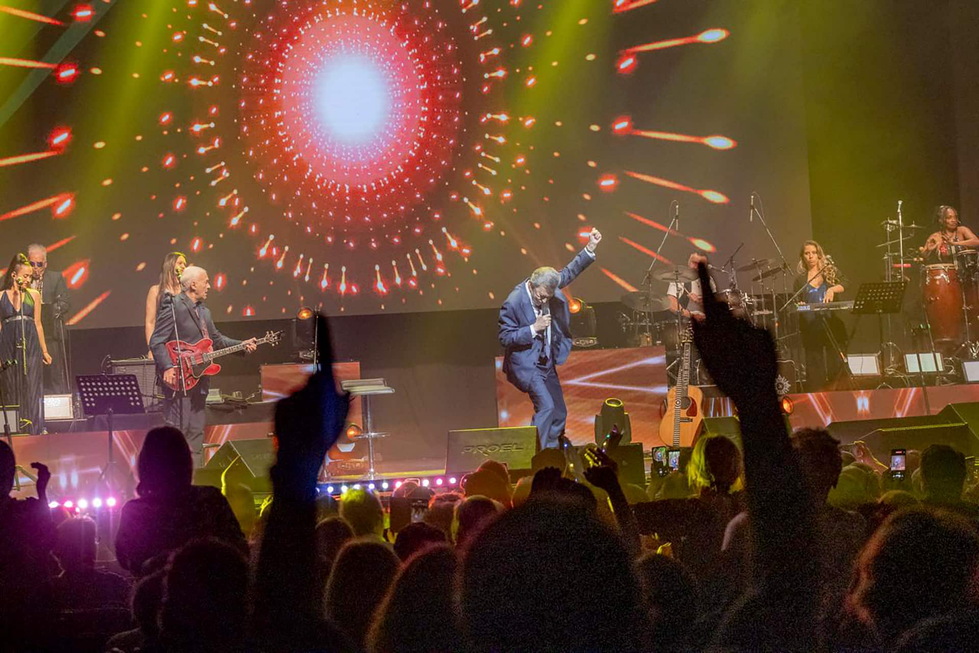 Desde el inicio, apenas pasadas las 20.45, el escenario se llenó de energía con una imponente puesta que incluyó pantallas proyectando imágenes de la juventud y adultez del artista, en un viaje emotivo por su carrera. Acompañado por once músicos de excelencia, Palito desplegó un repertorio que transitó entre la alegría de hits como “Un muchacho como yo”, “Corazón contento”, “La felicidad” y “Despeinada”, hasta instantes cargados de sensibilidad como “Muchacho que vas cantando” o “Sabor a nada”.