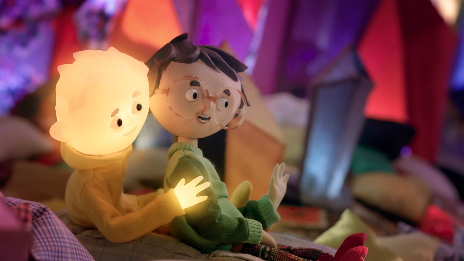 Por primera vez, Tony tiene una verdadera amiga. Le presenta a Shelly su mundo de fantasía dentro de su búnker de almohadas, y ella le muestra su tesoro secreto: una linterna mágica. Con su luz, crean imágenes y mundos increíbles que solo ellos pueden ver.