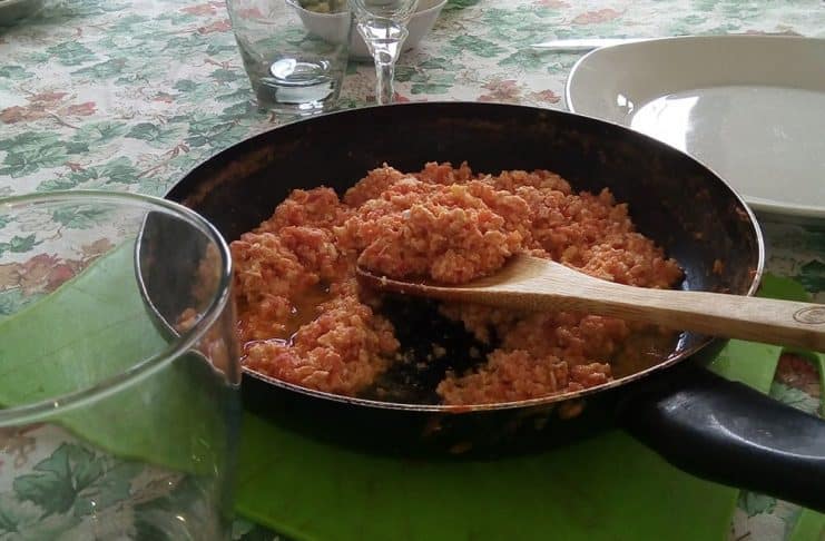 ยซยกHola! Al cosechar tomates de mi pequeรฑa huerta, recordรฉ una receta que solรญa hacer mi mamรก, Malvina, en รฉpoca de tomates maduros y muy sabrosos, ideal como acompaรฑamiento de cualquier tipo de carnes o ensaladas crudas. De chicos, mis hermanos y yo ayudรกbamos mucho en la cocina, por ejemplo, en esta receta rallรกbamos los tomates, que es mรกs rรกpido que pelarlos. ยกEspero que la disfruten!ยป