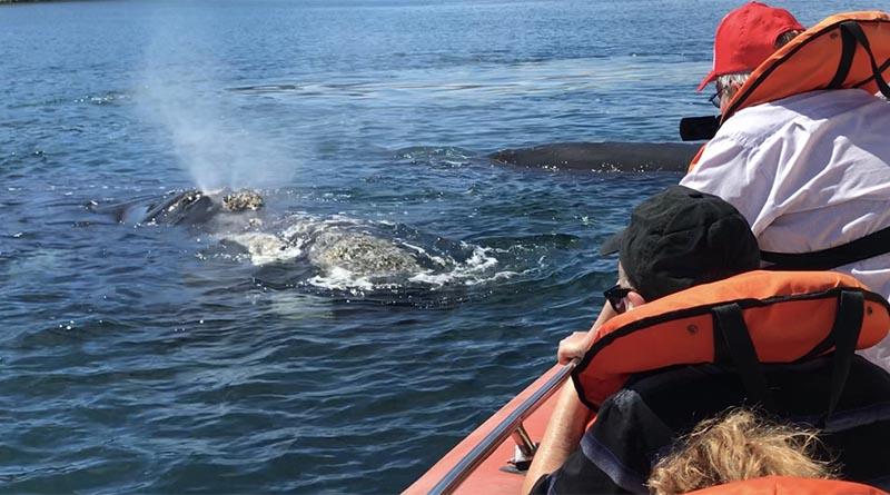 En Pirámides hay empresas con embarcaciones de distintos tipos para hacer el avistaje, todas con guías especializados. Una vez en la embarcación y apenas se ingresa al agua, comienza la aventura. Hay que hacer silencio, saber esperar y dejarse sorprender: los ojos grandes, las colas y aletas son lo primero en aparecer; las ballenas son curiosas y no dudan en acercarse a los barcos o pasar por debajo de ellos. Van junto a sus crías, así que la emoción es doble, y a veces más. Si hay suerte, algún ejemplar saltará. Mientras la naturaleza se encarga del espectáculo, los guías explican, en voz baja, cómo es el ciclo de vida de estos gigantes del agua. El viaje dura una hora y media, pero el recuerdo queda para siempre. Las embarcaciones llegan también a la lobería, donde es posible ver de cerca cómo decenas de lobos toman sol y nadan allí.
