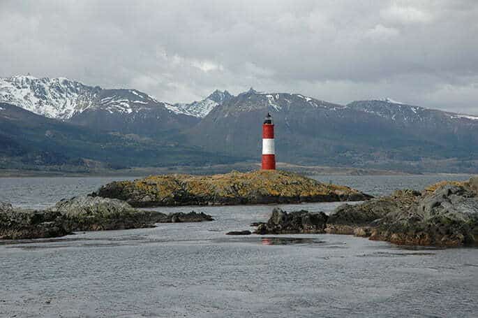 Es tan al surโฆ es en el fin del mundo. Es ese faro y, allรก atrรกs, una ciudad alucinante colgada de las montaรฑas imponentes, nevadas, atronadoras. Una ciudad que baรฑa sus plantas en el canal de Beagle. La imagen supera la imaginaciรณn.