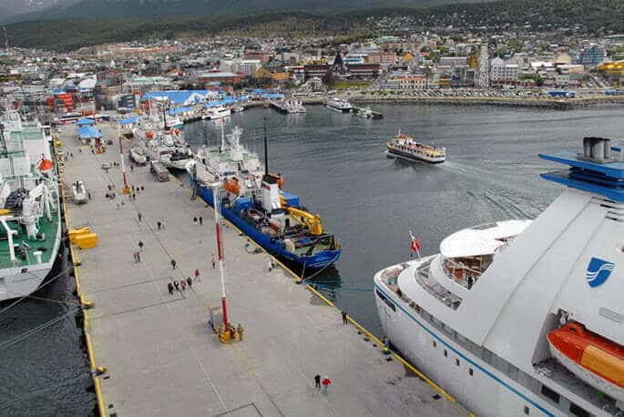 Al puerto, ubicado en la bahรญa, en la zona norte del canal, arriban buques de transporte navales, barcos comerciales, turรญsticos y cientรญficos, como asรญ tambiรฉn cruceros y otras embarcaciones que visitan la ciudad.