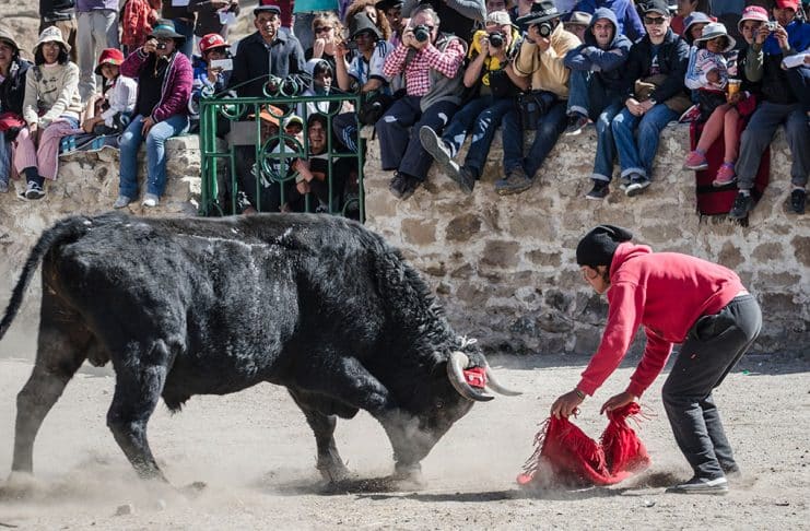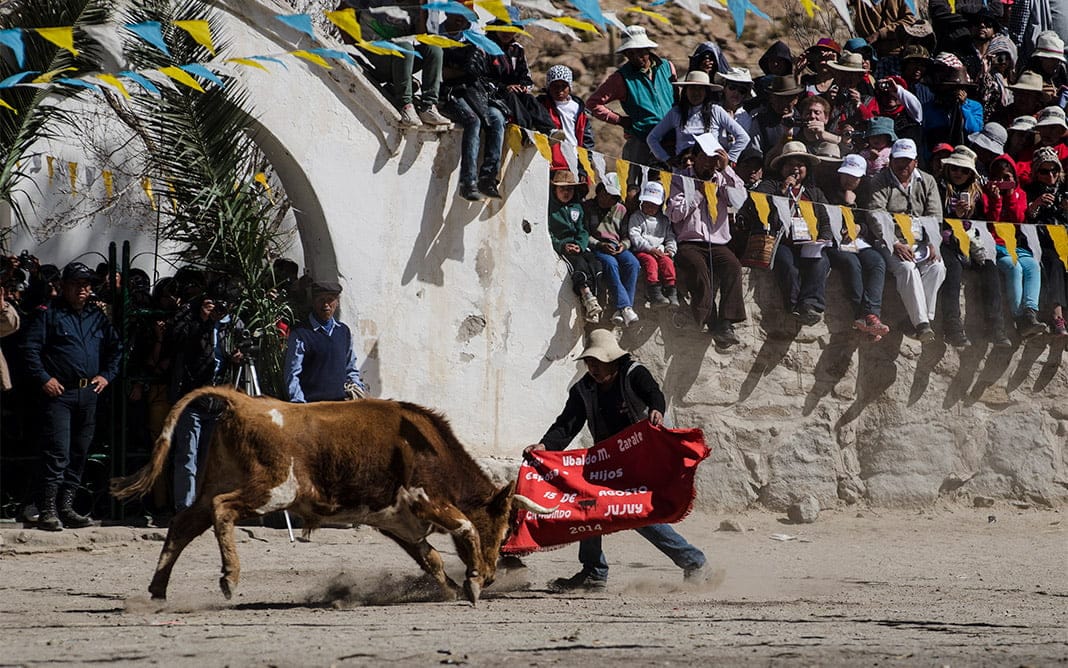 La frase que promociona la festividad, absolutamente certera, asegura que es la รบnica corrida de toros que se realiza en la Argentina. Claro que de inmediato puntualiza un dato fundamental para estos tiempos: a diferencia de las tradicionales, las que siguen ocurriendo en Espaรฑa โo en donde fueraโ, en estas corridas el animal es venerado y, por consiguiente, no se lo lastima en absoluto. El objetivo, en este caso, es recuperar de la frente del toro una vincha roja munida de unas muy particulares monedas de plata que luego serรกn ofrendadas a la Virgen de la Asunciรณn. Toda la trama de la ceremonia contiene momentos de vรฉrtigo y otros de armonรญa, siempre envueltos en una alta religiosidad, una emociรณn y un colorido que provocan a todo espectador que se acerca a Casabindo.