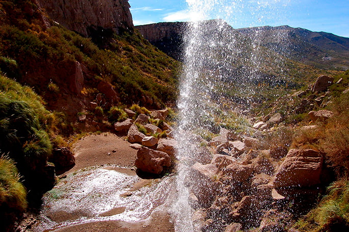 Un hermoso atractivo se configura en las termas de Cajรณn Grande, a 135 kilรณmetros de la ciudad, con sus cinco piletas a cielo abierto con aguas de caracterรญsticas ferrosas y propiedades mรกgicas, ideales para el tratamiento de afecciones de tipo reumรกticas, bronquitis, artritis, de circulaciรณn y diabetes. Tienen un agregado que las hace indispensables: se encuentran a los pies del cerro Campanario, con sus imponentes 4048 msnm. Es un lugar excelente para hacer caminatas, cabalgatas, trekking, safaris y excursiones.