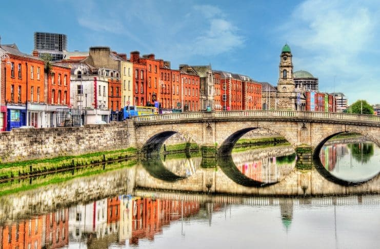 Al mítico río Liffey lo cruzan 15 puentes: por caso, el de forma de arpa –que recuerda a Samuel Beckett– o el de James Joyce, ambos diseñados por Santiago Clatrava. El primero que se construyó fue el Ha’penny Bridge, en 1816, que conecta el barrio Temple Bar con la ribera norte de Dublín.