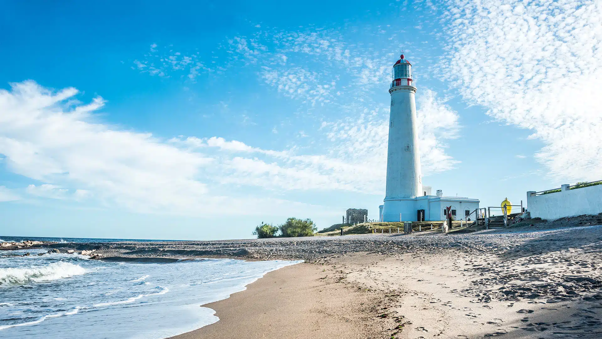 Desde las playas, el faro del cabo de Santa María parece apenas un alfiler que desborda de la bahía. El chiquilín cierra un ojo y mira con el otro a través del círculo que forma con los dedos y lo atrapa. Alumbró por primera vez el 1° de septiembre de 1874, cuando fue fundada La Paloma. Durante décadas, esa costa fue transitada por todo tipo de embarcaciones y, aún hoy, la mayoría pesqueras, se sirven de su luz. Posee una altura de 30 metros y un alcance luminoso de 20,5 millas náuticas. Tiene un ingreso angosto y una escalera caracol bordea su interior: por ahí se llega hasta la cima. Un balcón redondo en derredor del foco permite una vista extraordinaria de la ciudad y sus alrededores.