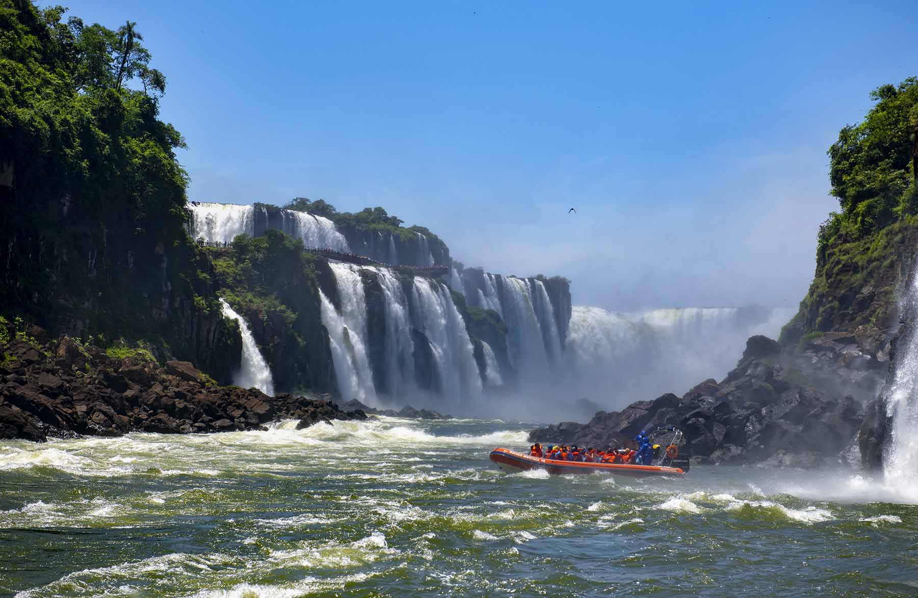 Pero los hay de todo tamaño combinando sus movimientos. Y una variante para las billeteras más acaudaladas es vislumbrar esa belleza descomunal en un viaje en helicóptero: desde las alturas, se podría corroborar que la Garganta se trata de un fenomenal vértice inserto en una media luna alucinante entre acantilados e islotes, en plena Selva Paranaense, y que se forma, entre tantos otros, por el salto San Martín, el Arrechea, el Belgrano, el Mitre, el Floriano, el Adán y Eva, el Deodoro, el Chico, el Dos Hermanos, el Benjamín Constant, el Unión, el Escondido, el Rivadavia, el Tres Mosqueteros, el Dos Mosqueteros y el Bozzetti. En un extremo se encuentra el salto Ramírez, uno de los más pintorescos y populares. Así como es notable el sendero Macuco, de 3 km, con variada dificultad: en dos horas se llega al salto Arrechea.